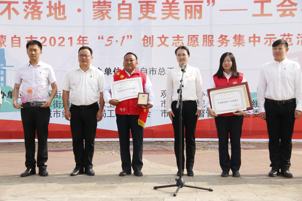 4月30日,蒙自市總工會(huì)在南湖廣場(chǎng)開展“煙頭不落地·蒙自更美麗”志愿服務(wù)集中示范活動(dòng)暨“全國模范職工小家”、“全國優(yōu)秀工會(huì)工作者”頒獎(jiǎng)儀式,...